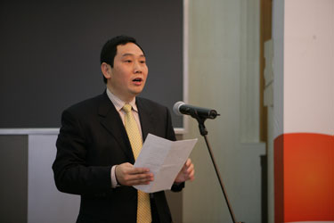江西省建設(shè)工程有限公司董事長(zhǎng)宗贛生在成立大會(huì)上發(fā)表設(shè)獎(jiǎng)感言
