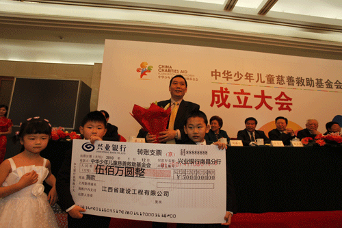 中華少年兒童慈善救助基金會(huì)(以下簡(jiǎn)稱“兒慈會(huì)”)2010年1月12日在北京人民大會(huì)堂正式成立。中共中央政治局常委、國(guó)務(wù)院副總理李克強(qiáng)在為基金會(huì)成立發(fā)來(lái)的賀信中說(shuō):“慈善救助是一項(xiàng)崇高的事業(yè),是對(duì)社會(huì)保障的重要補(bǔ)充。謹(jǐn)對(duì)基金會(huì)的成立表示祝賀,對(duì)大家矢志從事少年兒童事業(yè)表示由衷的敬意。希望并相信你們會(huì)在各方支持下,發(fā)揮優(yōu)勢(shì),搭建平臺(tái),幫助更多有特殊困難的少年兒童和他們的同齡人,一起在同一片藍(lán)天下健康成長(zhǎng)。”江西省建設(shè)工程有限公司董事長(zhǎng)宗贛生到會(huì)并捐贈(zèng)人民幣500萬(wàn)元設(shè)立"自立奮進(jìn)獎(jiǎng)",宗贛生表示,以后會(huì)根據(jù)企業(yè)發(fā)展?fàn)顩r捐款額逐年遞增,對(duì)貧困學(xué)生以及教師進(jìn)行資助和獎(jiǎng)勵(lì)。