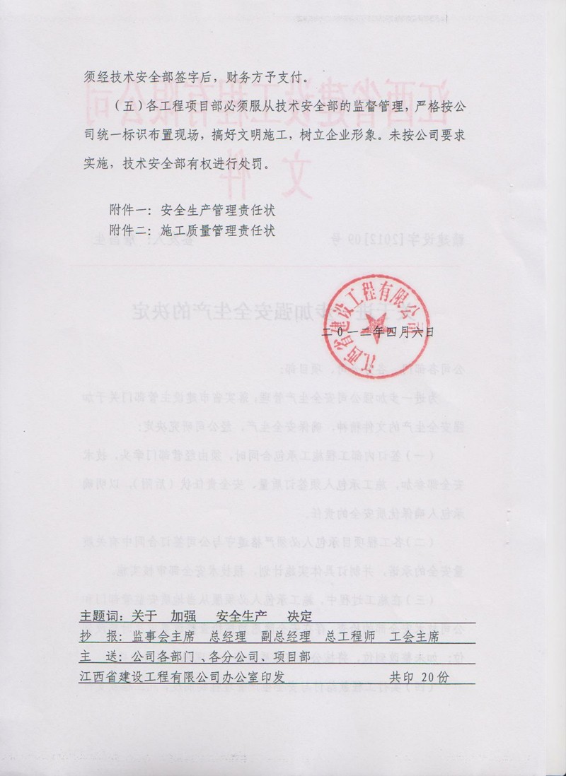 附件一:安全生產管理責任狀